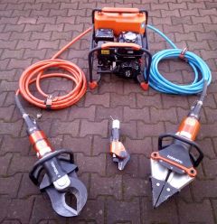Lekki zestaw do ratownictwa technicznego LUKAS W skład zestawu wchodzi spalinowa pompa hydrauliczna GO3T, zestaw węży hydraulicznych długości 10m oraz wymienne narzędzie typu kombi (średni nożyco - rozpieracz LKS 35 EN). Nożyco - rozpieracz o sile cięcia 38 ton, rozpierania 11,3 tony oraz ciągnięcia (po zastosowaniu odpowiednich łańcuchów) 4,5 tony służy do cięcia (głównie elementów stalowych, aluminiowych), rozpierania, przesuwania oraz podnoszenia elementów pojazdów, budowli czy innych przeszkód podczas wypadków komunikacyjnych, katastrof budowlanych czy innych zdarzeń. Stosunkowo niewielka masa oraz wymiary, a także możliwość rozłączania zestawu pozwala na przenoszenie w dowolne miejsce akcji oraz ułatwia operowanie urządzeniem.