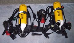 Nadciśnieniowe aparaty powietrzne MSA AUER z maskami ULTRA ELITE oraz czujnikami bezruchu MOTION SCOUT Stosowane do ochrony dróg oddechowych strażaka przed toksycznym działaniem dymu, oparów, a także wysokiej temperatury oraz umożliwiające pracę w warunkach beztlenowych. Stanowiący obowiązkowe wyposażenie kompletu, czujnik bezruchu, sygnalizuje głośnym sygnałem dźwiękowym oraz błyskowym unieruchomienie strażaka, który np. uległ wypadkowi, zasłabnięciu, czy został przygnieciony.