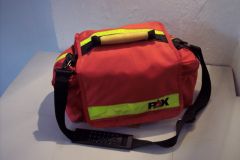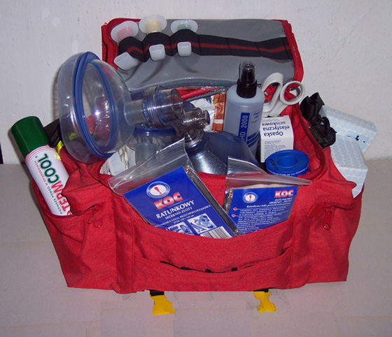 Apteczka (torba) pierwszej pomocy Chociaż do standardowego zestawu R1 jej daleko, to jednak znajduję się w niej worek samorozprężalny (AMBU) z maską dla dorosłych i dzieci, rurki ustno-gardłowe, spray na oparzenia, nożyczki ratownicze, koce ratunkowe, płyn do dezynfekcji rąk, siatki opatrunkowe CODOFIX, gazy opatrunkowe, bandaże, chusty trójkątne, przylepce.