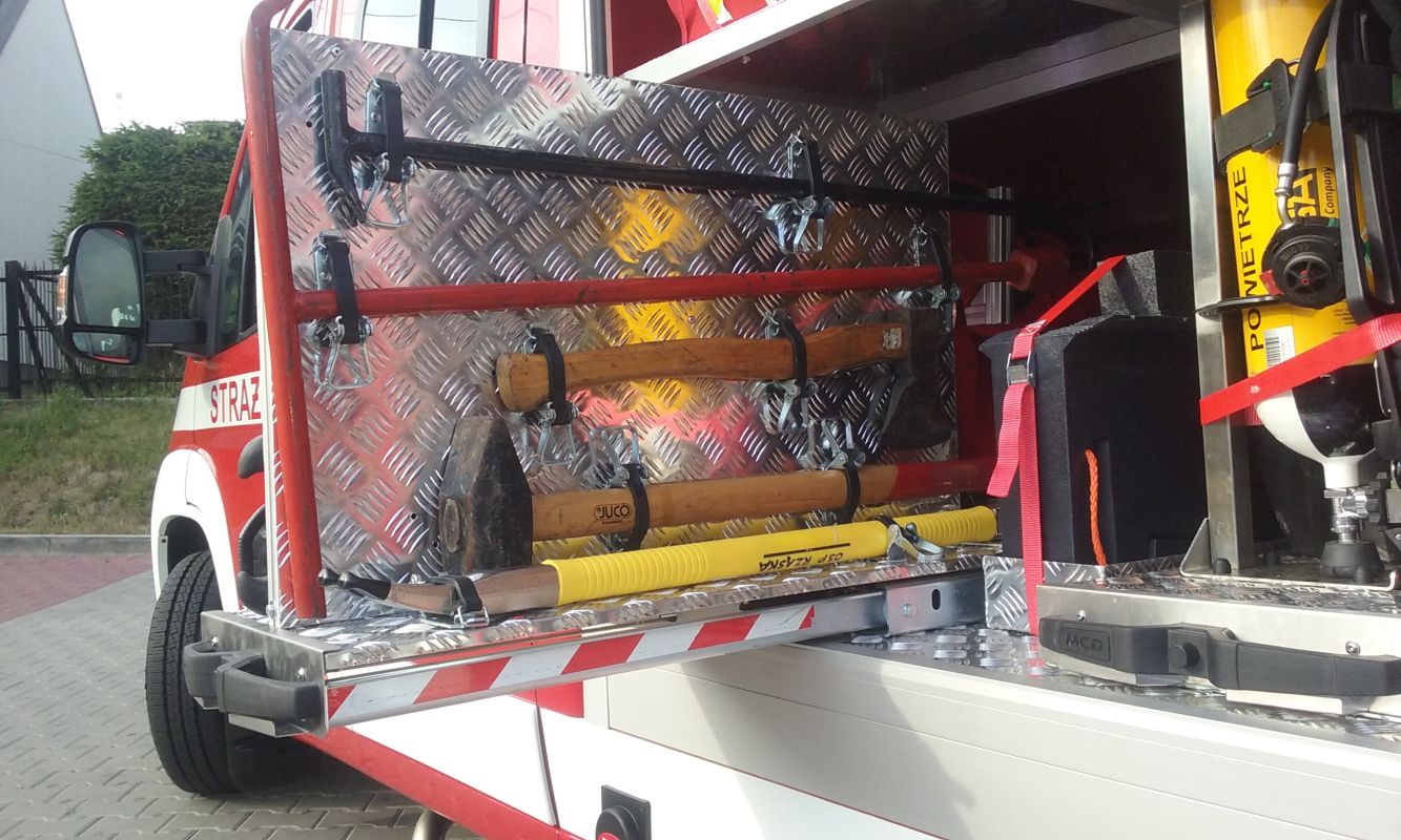 Pilarki do drewna Używane głównie do usuwania wiatrołomów, a także drewnianych konstrukcji budynków czy innych elementów utrudniających dotarcie do poszkodowanych lub źródła pożaru. Husqvarna 346 XP Wyposażona w prowadnicę długości 38cm, używana do lżejszych prac w miejscach trudno dostępnych. STIHL MS 440 Wyposażona w prowadnicę długości 75cm, używana do najcięższych prac w ekstremalnych sytuacjach. Dodatkowo na wyposażeniu prowadnica długości 45cm.