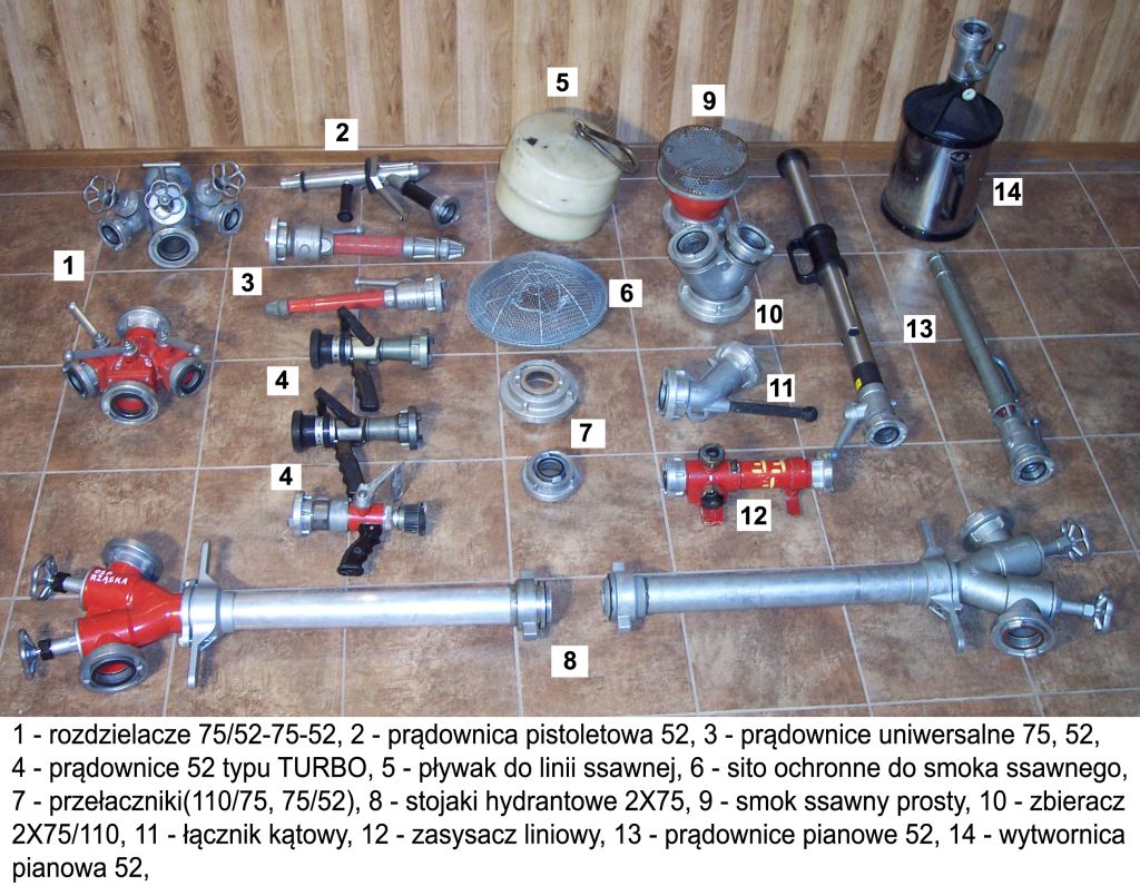 Armatura wodno-pianowa Wszystko co jest niezbędne do podawania wodnych i pianowych prądów gaśniczych oraz tankowania wozu środkami gaśniczymi lub zasilania nimi innych wozów.