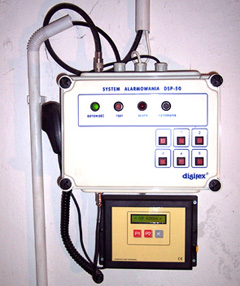 System powiadamiania alarmowego DSP50 + moduł GSM Działanie systemu : w przypadku konieczności zadysponowania naszej jednostki, dyżurny w miejskim stanowisku kierowania PSP w Krakowie drogą radiową włącza syrenę w naszej jednostce a moduł GSM dzwoni równocześnie na telefony komórkowe strażaków. Dodatkowo za pośrednictwem modułu GSM można uruchomić syrenę(oraz dzwonienie alarmowe) przy pomocy telefonu komórkowego(numer tego telefonu musi być zaprogramowany w module).