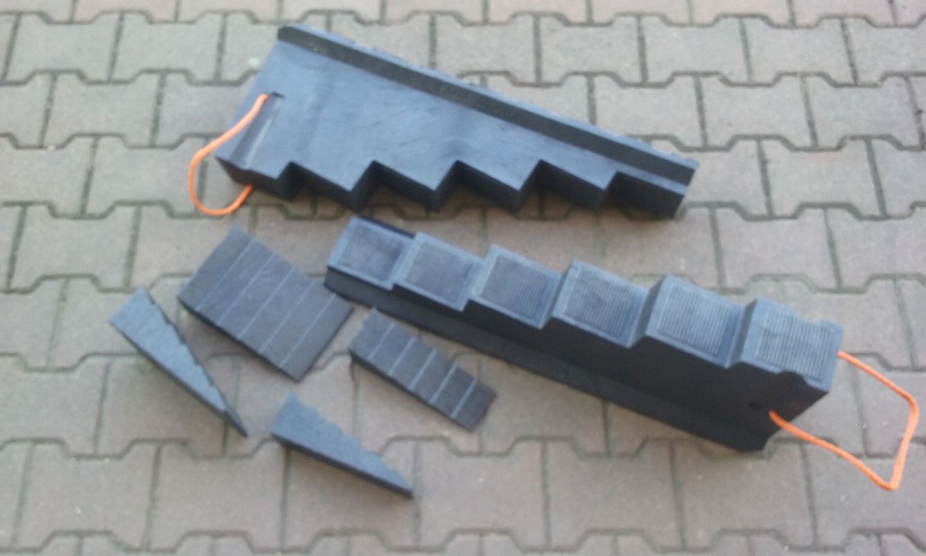 Zestaw podkładów i klinów do stabilizacji typ A Podkłady i kliny służą do bezpiecznej stabilizacji pojazdów i do podpierania podniesionych ciężarów. Zapobiegają przemieszczaniu się pojazdów w czasie prowadzenia akcji ratowniczej, np. podczas użycia nożyc i rozpieraczy.
