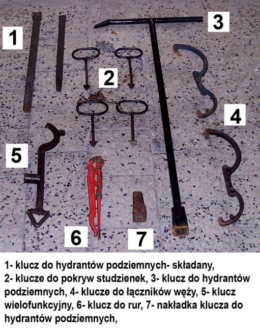 Klucze pożarnicze Klucze używane do obsługi zaworów hydrantowych, gazowych, wodnych i innych, otwierania studzienek, a także do obsługi łączników węży pożarniczych.
