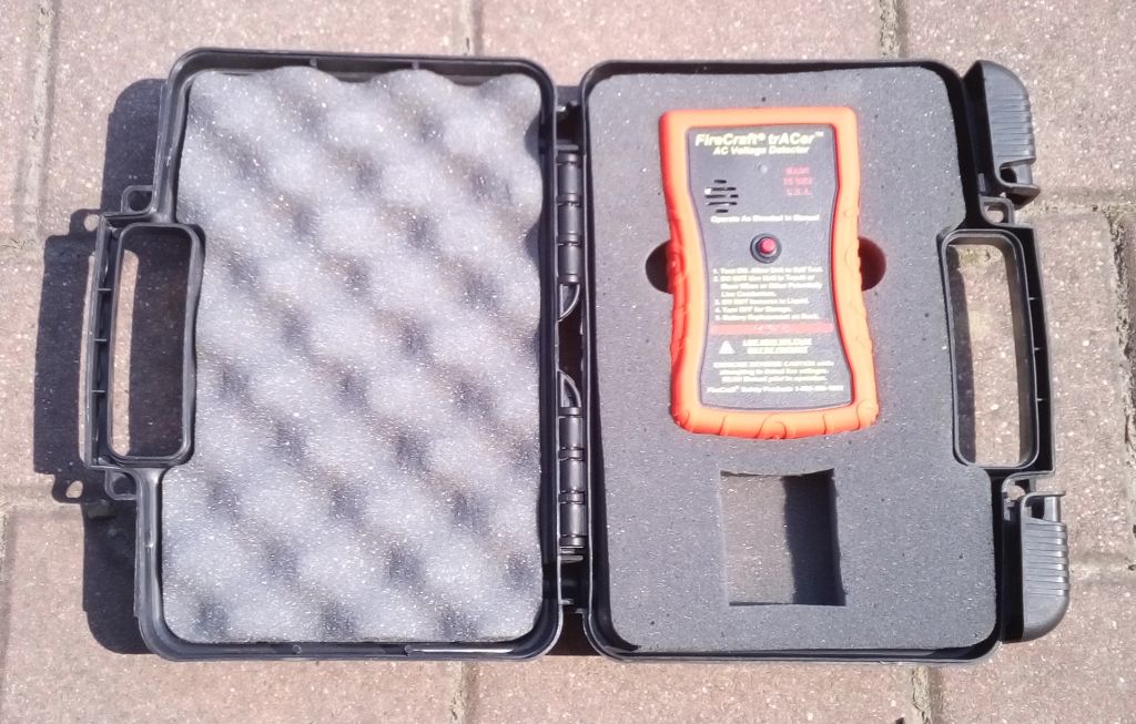 Detektor napięcia prądu zmiennego FireCraft trACer To cyfrowy detektor prądu przemiennego, który z bezpiecznej odległości, bezdotykowo wykrywa napięcie elektryczne w urządzeniach, liniach energetycznych, przewodach a także na powierzchni przedmiotów, elementów konstrukcji, na powierzchni wody (np. w kałużach czy w basenie) a co najważniejsze precyzyjnie wskazuje kierunek niebezpieczeństwa oraz niebezpieczne miejsca i obszary. Używany wszędzie tam gdzie może wystąpić zagrożenie porażenia prądem.