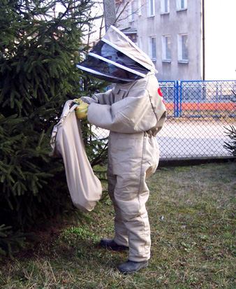 Kombinezony pszczelarskie (na szerszenie) Kombinezon wraz ze specjalnymi rękawicami oraz workiem do przenoszenia rojów stanowi zestaw do likwidacji zagrożeń stwarzanych przez niebezpieczne owady. Wykonanie oraz użyty materiał sprawia, że kombinezon skutecznie chroni przed użądleniami przez szerszenie, osy czy inne owady żądlące.