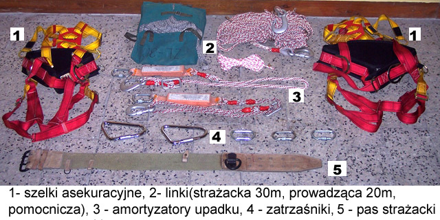 Sprzęt do asekuracji podczas działań na wysokości oraz ewakuacji i ratownictwa poszkodowanych lub zagrożonych osób przy pomocy technik alpinistycznych.